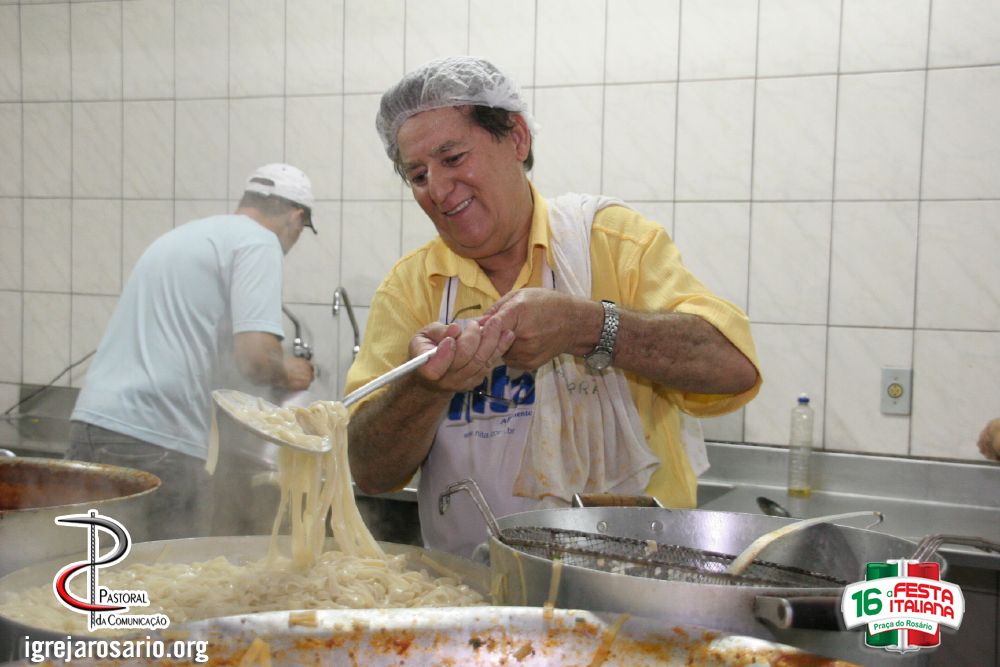 Além das danças, as comidas típicas da cozinha italiana como lasanha, nhoque, macarrão, frango com polenta, pizza e a famosa focaccia (pastel italiano), são o carro chefe da festa, como também o delicioso suco de uva e o vinho.