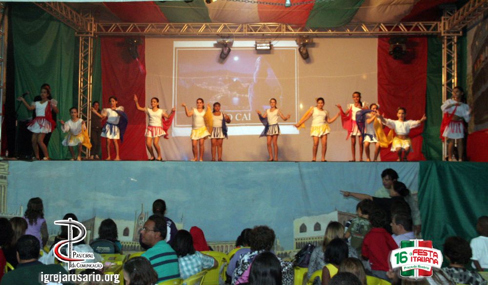 A segunda noite da 16ª festa italiana no sábado (5) foi marcada pelas belíssimas músicas e danças italianas apresentadas pelas crianças, adolescentes e jovens da paróquia, que durante vários dias se prepararam para este momento.
